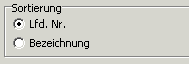 zur Verfügung. Wenn sie Lfd. Nr. wählen, werden Ihnen die Datensätze in der Reihenfolge der Erfassung, wenn Sie Bezeichnung wählen, in der alphabetischen Reihenfolge, aufsteigend sortiert, angezeigt.